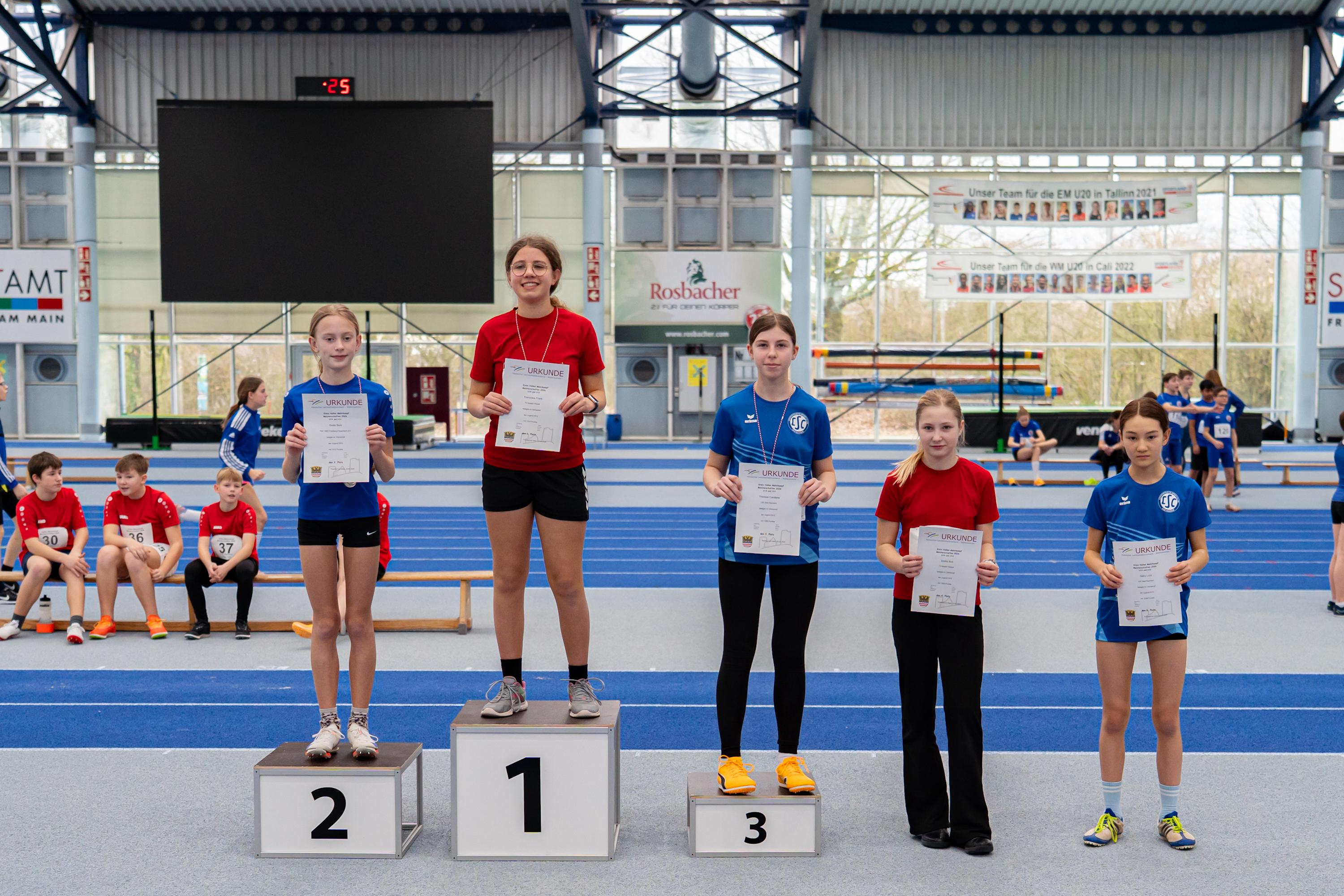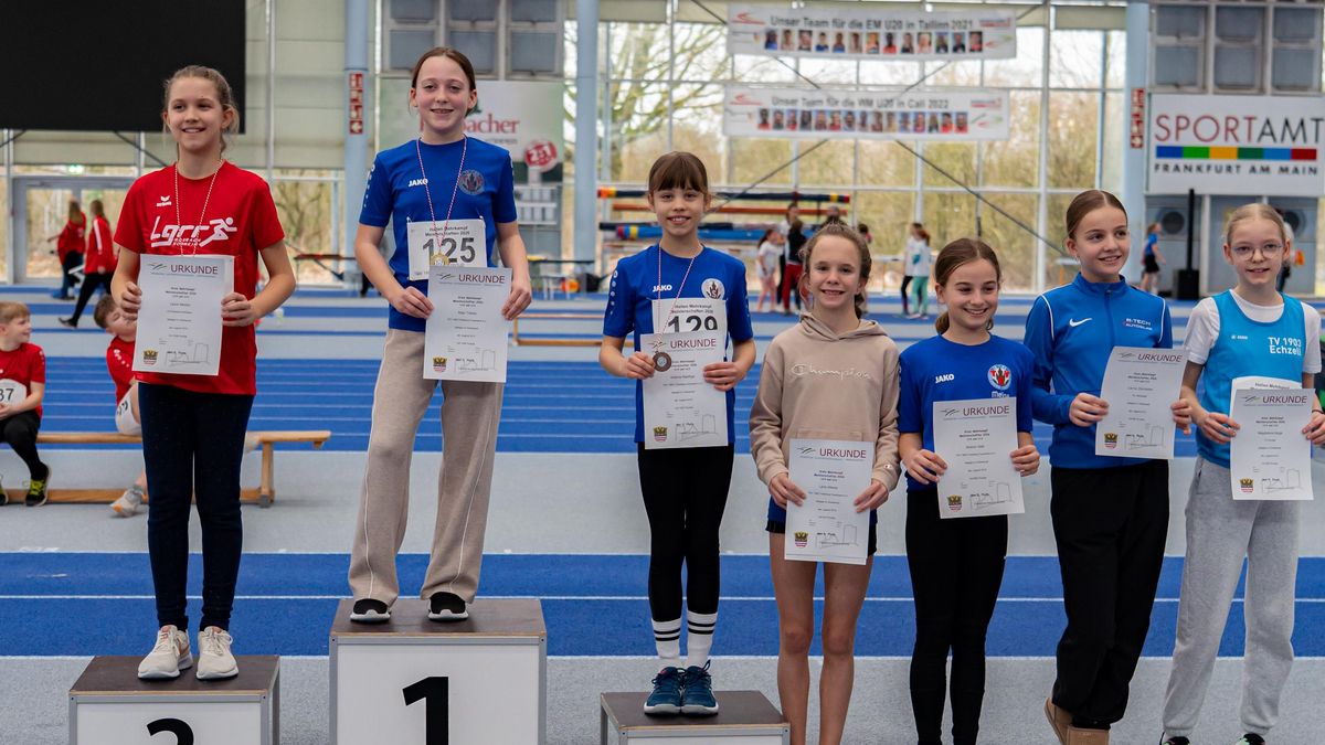 Die knappste Entscheidung gab es im Vierkampf der W12 zwischen Franziska Frank vom TV Nieder-Weisel und Greta Behr vom TSV Friedberg-Fauerbach. Nur zwölf Punkte trennten beide Athletinnen. Während Behr, im vergangenen Jahr Kreismeisterin der W11 im Hallen-Dreikampf, herausragende 1,40 Meter hoch sprang, war Frank in den weiteren drei Disziplinen jeweils besser und knackte im Weitsprung die Vier-Meter-Marke (4,03 m).