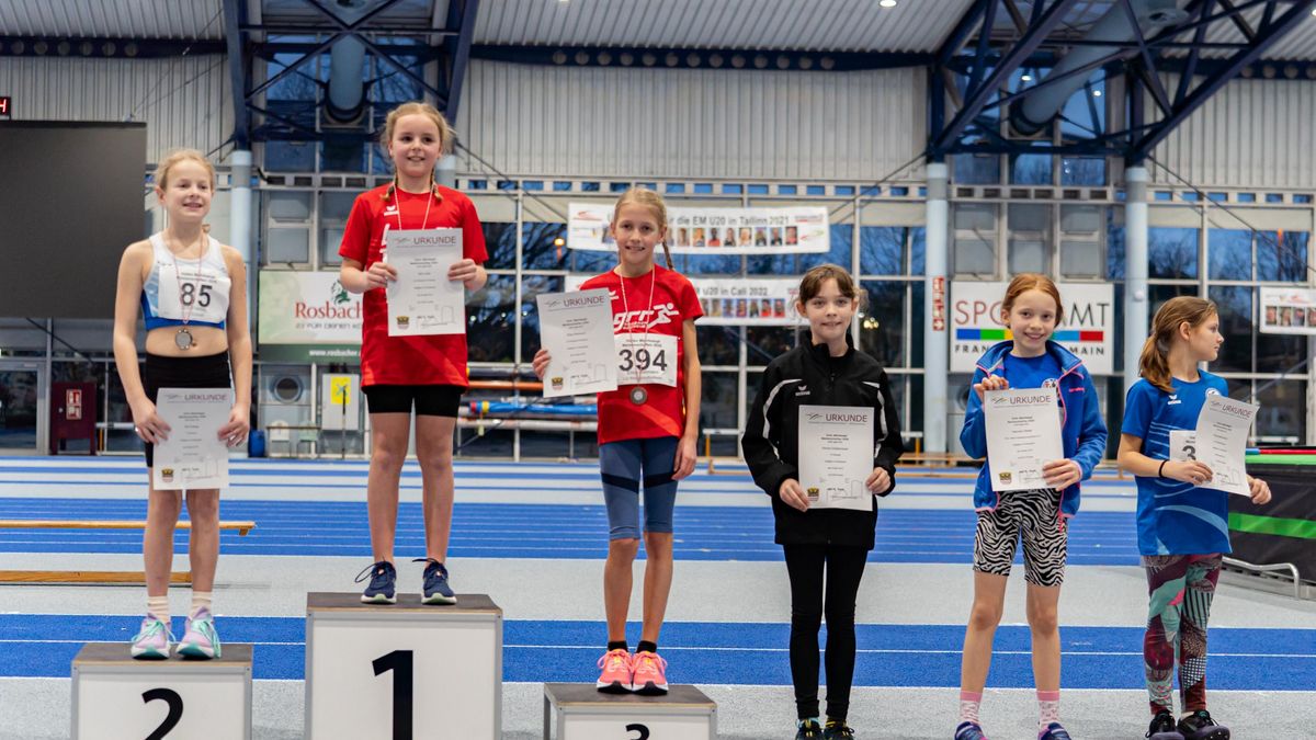 Bei der Meisterschaft, die gemeinsam mit dem Main- und dem Hochtaunuskreis ausgetragen wurde und ein Rekordmeldeergebnis von über 400 Teilnehmerinnen und Teilnehmer verzeichnete, setzte sich Sarah Pompetzki in der W13 gegen alle Konkurrentinnen durch. 4,48 Meter im Weitsprung waren die Tagesbestweite, zudem lief sie 8,81 Sekunden über 60 Meter und stieß die Kugel auf 7,32 Meter. Jordan sprang unter anderem 1,44 Meter hoch – Tageshöchstwert über alle Altersklassen hinweg. Dies gelang M13-Dreikampfsieger Steven Dickhaut über 60 Meter in 8,47 Sekunden und mit 4,96 Meter im Weitsprung.