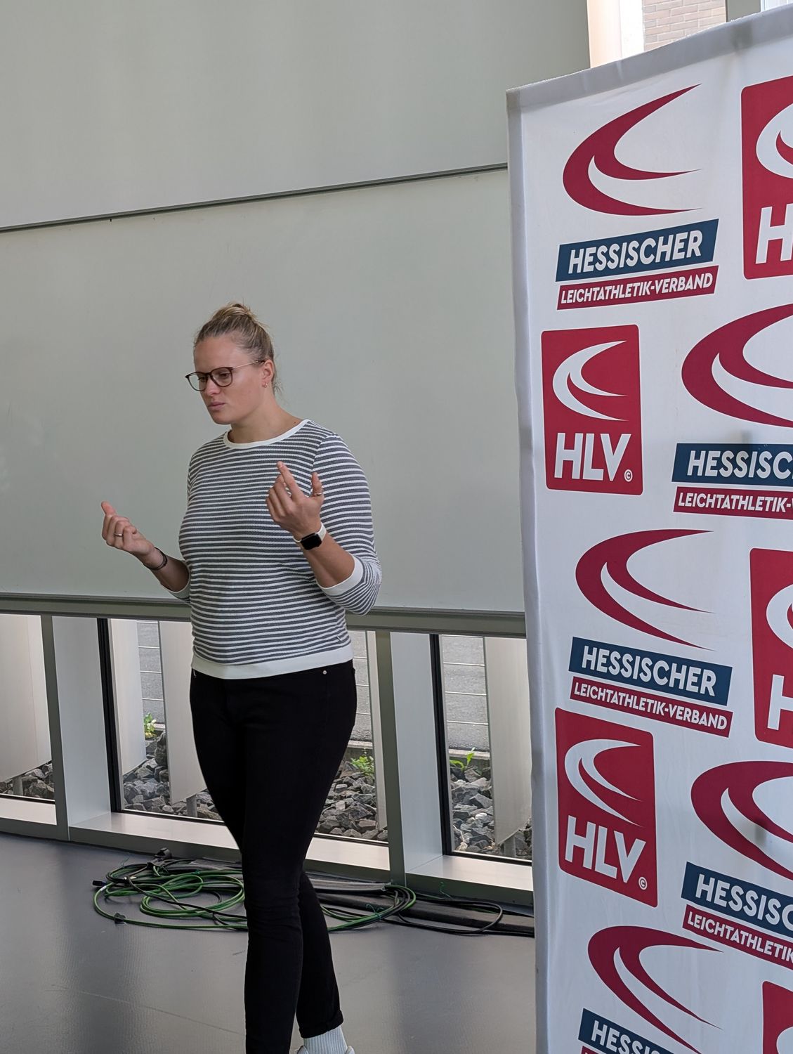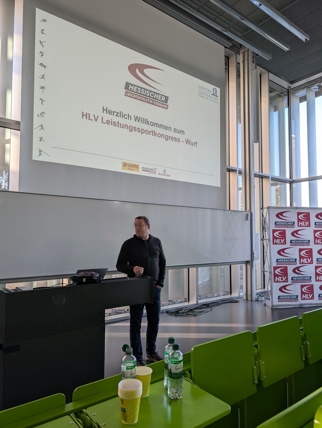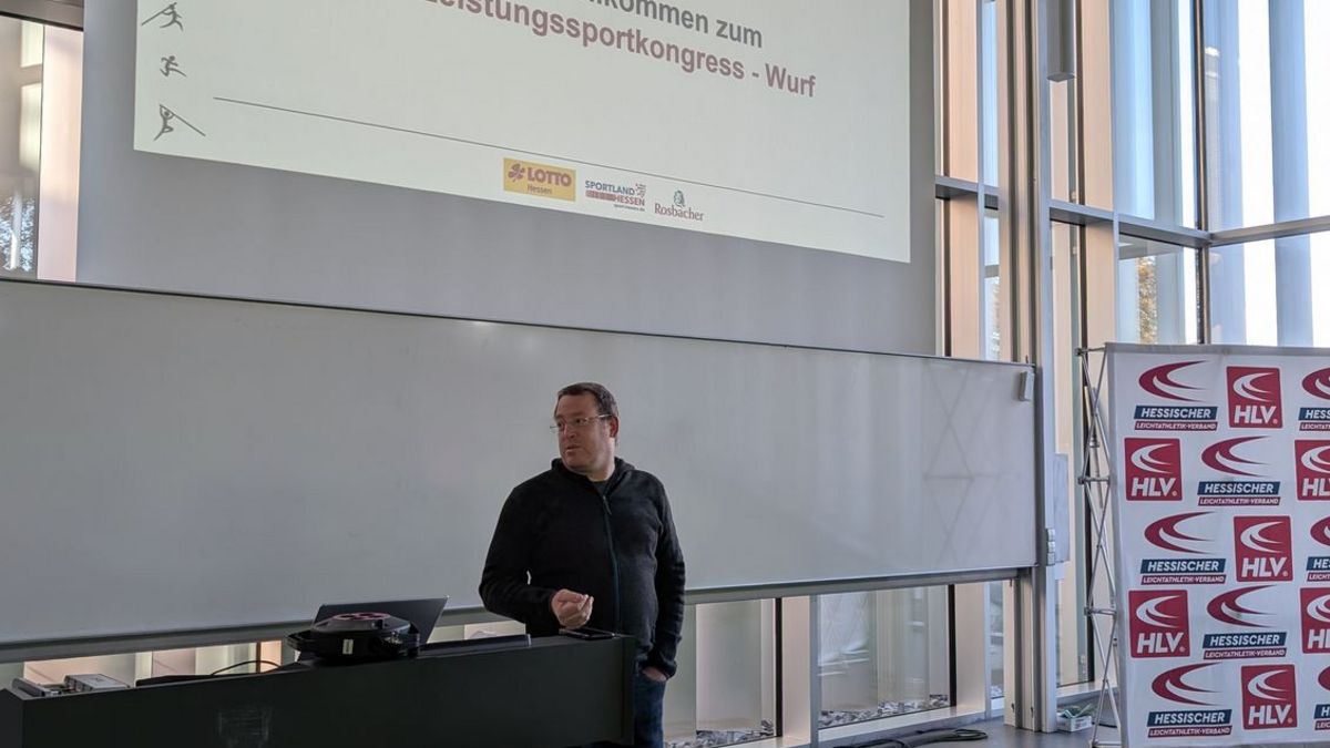 Mit dem erstmalig disziplinspezifischen HLV-Leistungssportkongress waren wir wieder im sportwissenschaftliichen Institut der Goethe-Universität Frankfurt zu Gast. Begrüßt wurden die rund wurfbegeisterten 130 Teilnehmer:innen vom Abteilungsleiter des sportwissenschaftlichen Instituts der Universität, Prof. Dr. Christopher Heim, HLV-Präsident Klaus Schuder, HLV-Vizepräsident Sportentwicklung Martin Rumpf, HLV-Geschäftsführer Sport Carsten Ebert und Manuel Odey, Fachwart Lehre im HLV und Fachleiter Leichtathletik bei der Goethe-Universität. Anschließend startete der erste spannende Vortrag des Tages von der ehemaligen Vize-Europameisterin und Olympionikin im Kugelstoßen Sara Gambetta. Sie schilderte ihren Weg von einer international erfolgreichen Mehrkämpferin in der Jugend zur ebenso erfolgreichen Kugelstoßerin im Erwachsenenalter. Vor allem wurden die frühe Spezialisierung in der Leichathletik  und ihre Eindrücke als Leistungssportlerin thematisiert. Anschließend folgte ein spannnender Vortrag vom HLV-Landestrainer Wurf Martin Rumpf über Würfe im Kindesalter. Er wollte die Anwesenden dazu ermutigen, mit den Kindern und Jugendlichen rauszugehen und zu werfen. Seinen Vortrag beendete er mit dem Fazit: "Geht's raus und schmeißt's." Vor der Mittagspause hielt HLV-Cheftrainer Wurf, Bastian Otto, einen praxisorientierten Vortrag zu Hebetechniken im Krafttraining für Werfer:innen. Er ging auf verschiedene Kraftübungen ein, demonstrierte die korrekte Ausführung und gab wichtige Hinweise zu den verschiedenen Techniken. Nach der Mittagspause, die sehr intensiv zum Austausch untereinander genutzt wurde, folgte ein weiterer Vortrag vom Bundestrainer Diskuswurf, Markus Münch, zum Thema "Haben Zubringerleistungen aus dem Grundlagentraining eine Bedeutung? Erklärungen am Beispiel des weiblichen Diskuswurfs". Inhaltlich präsentierte er Studienergebnisse aus seiner Diplom-Trainerarbeit, welche den Einfluss von Zubringerleistungen auf die Wurfweite im Frauen-Diskus empirisch untersucht.