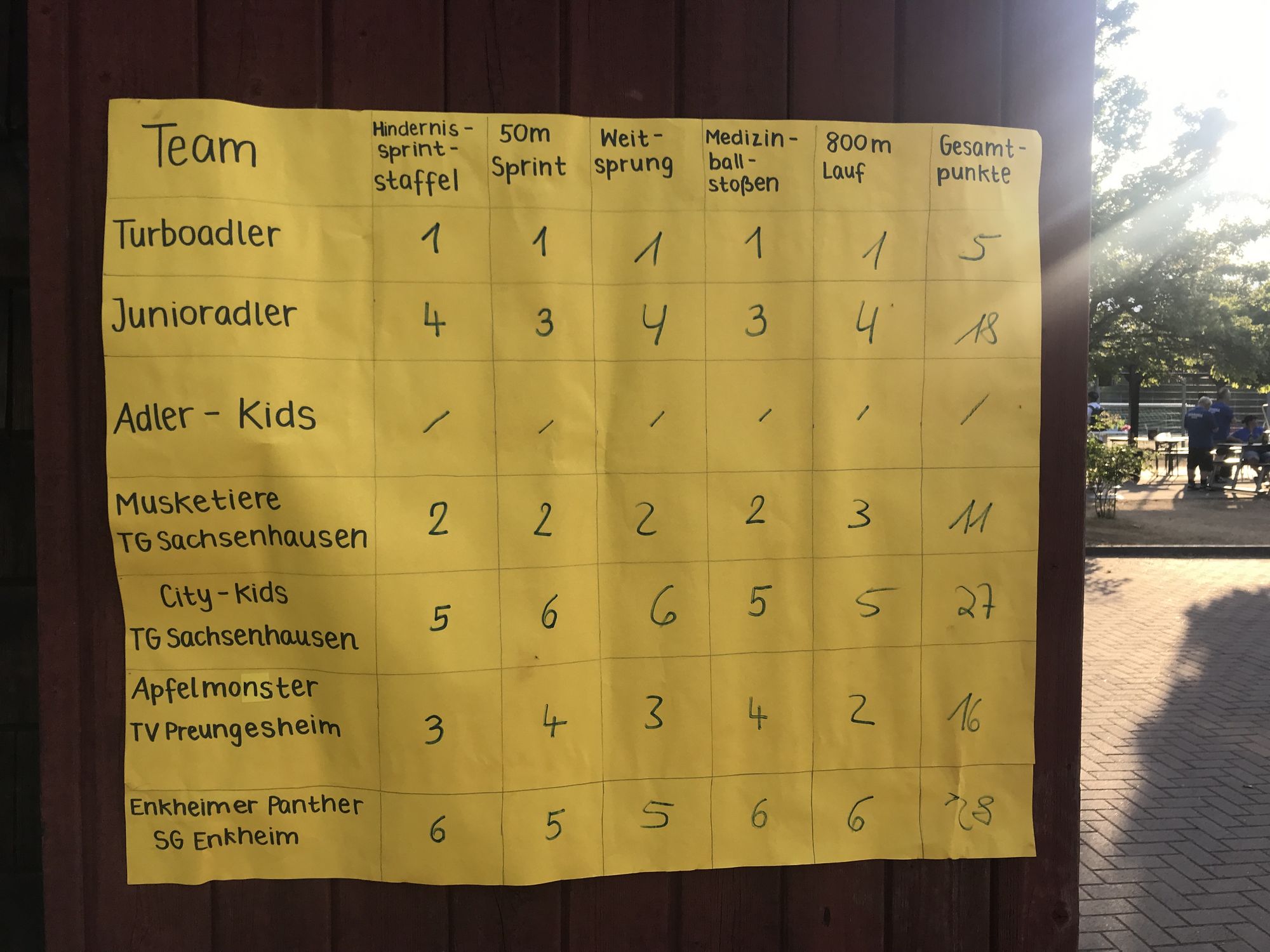 Hierzu wünschen wir den beiden Teams viel Erfolg. Auf Platz 3 folgte das Team Apfelmonster (TV Preungesheim) vor den Teams Junioradler (Eintracht Frankfurt), City - Kids TG Sachsenhausen) und EnkheimerPanther (SG Enkheim).